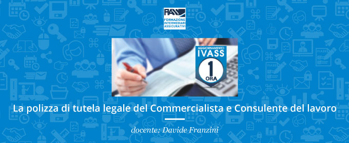 La polizza di tutela legale del Commercialista e Consulente del lavoro Codice corso: 254-062A1 Area tematica: Contrattuale & prodotti Durata: 1 ora Docente: Davide Franzini Obiettivo: Il corso tratta dell’argomento assicurazioni di tutela legale Commercialista e del consulente del lavoro e delle scoperture in ambito polizze RCT e Danni, con approfondimenti normativi – tecnico non