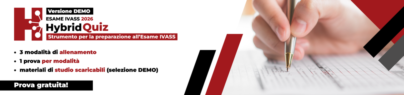 Hybrid Quiz è lo strumento dedicato alla preparazione dell’Esame IVASS 2026 (prova d’idoneità RUI): ti alleni sul database ufficiale IVASS, con un approccio pratico e misurabile per chi studia in autonomia.